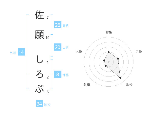 佐願 しろぷさんの総格は34画の2点!