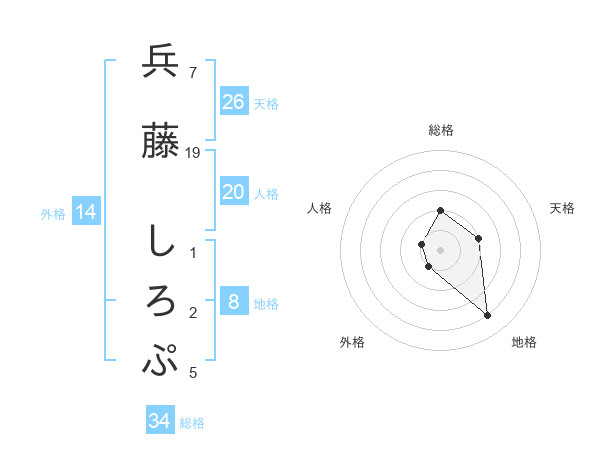 兵藤 しろぷさんの総格は34画の2点!