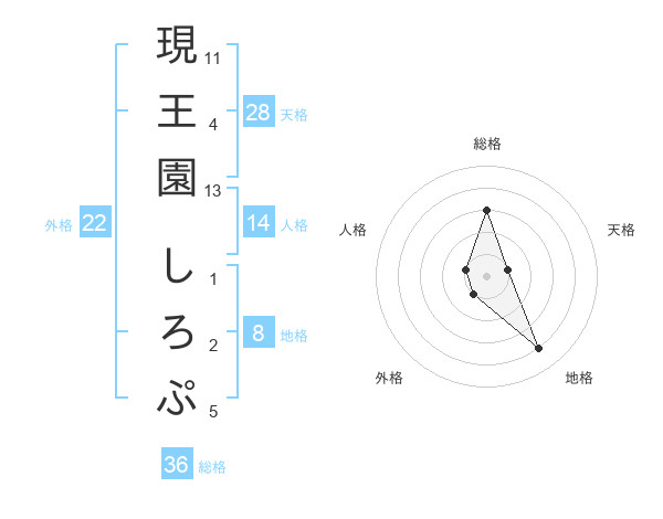 現王園 しろぷさんを姓名の画数から五運を鑑定