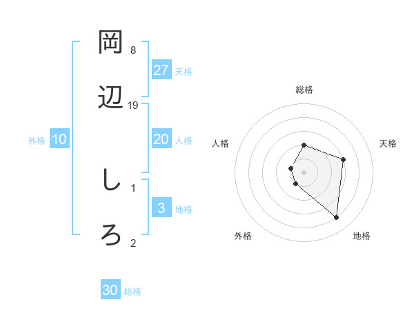 岡辺 しろさんの総格は30画の2点!