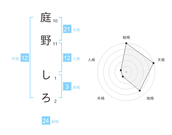 庭野 しろさんの天格は21画の5点!