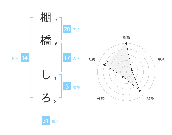 棚橋 しろさんを姓名の画数から五運を鑑定