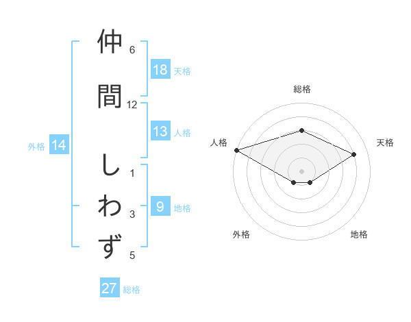 仲間 しわずさんを姓名の画数から五運を鑑定