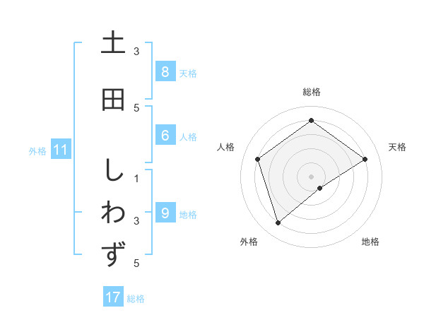 本サイトの鑑定結果の正当性は保証しません。鑑定結果は参考程度にお読みください。実際の名づけにご利用される場合は、姓名判断についてご自身でよくお調べください。