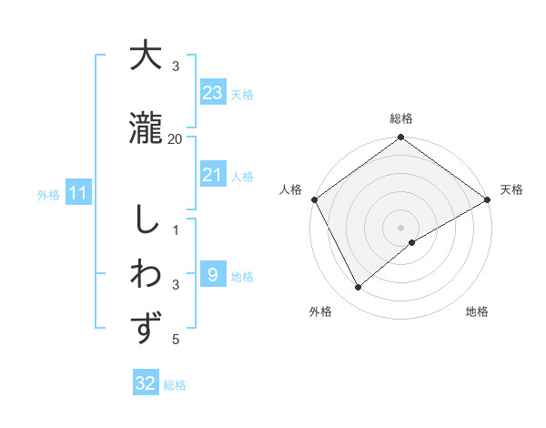 大瀧 しわずさんを姓名の画数から五運を鑑定
