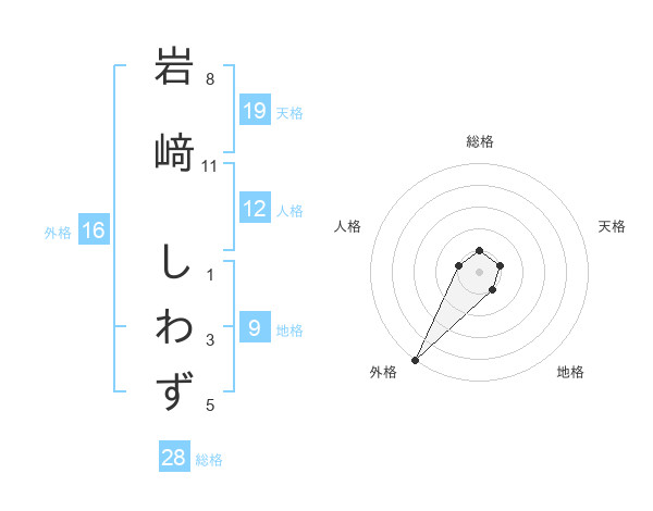 岩﨑 しわずさんを姓名の画数から五運を鑑定