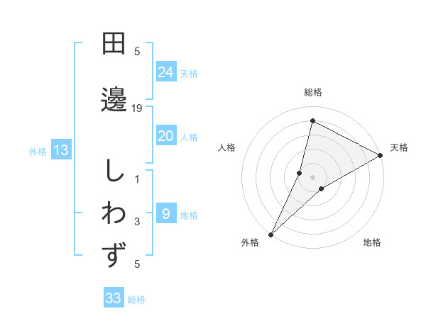 田邊 しわずさんを姓名の画数から五運を鑑定