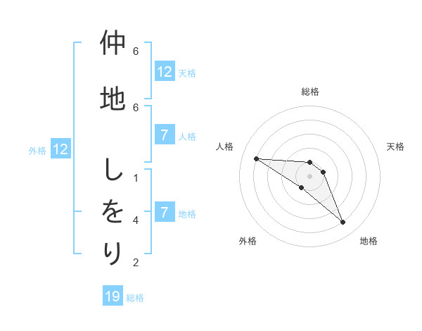 仲地 しをりさんの天格は12画の1点!