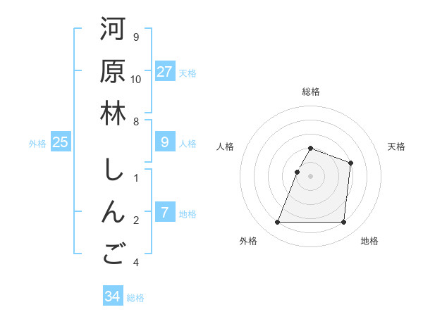 河原林 しんごさんの総格は34画の2点!