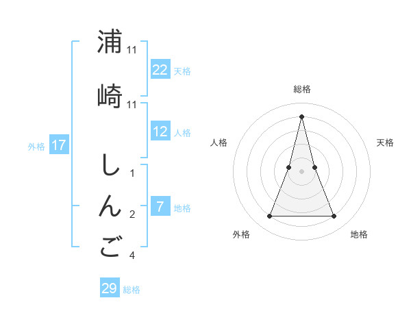 浦崎 しんごさんを姓名の画数から五運を鑑定