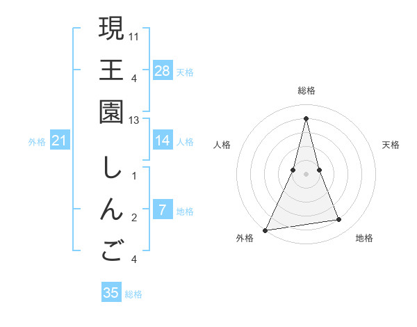 現王園 しんごさんの総格は35画の4点!