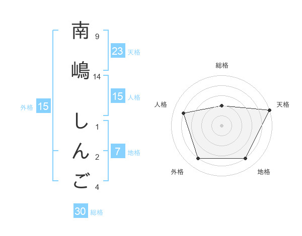 南嶋 しんごさんの天格は23画の5点!