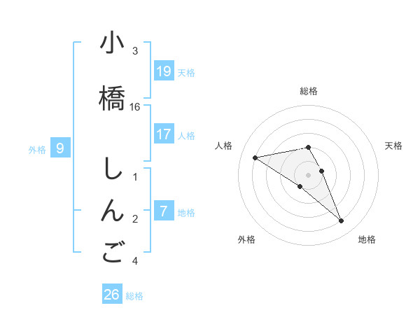 小橋 しんごさんを姓名の画数から五運を鑑定