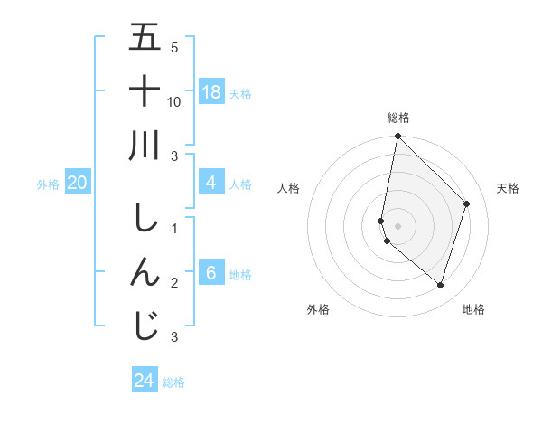 五十川 しんじさんを姓名の画数から五運を鑑定
