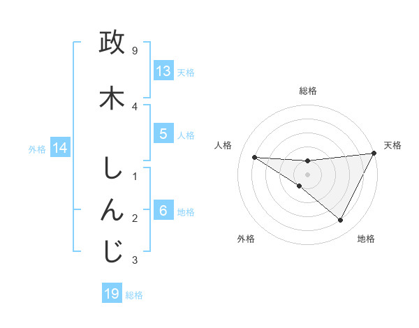 政木 しんじさんの天格は13画の5点!