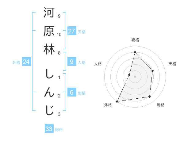 河原林 しんじさんの総格は33画の4点!
