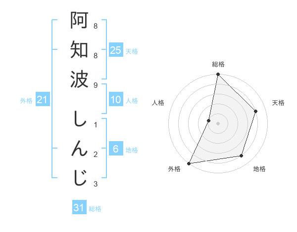 阿知波 しんじさんを姓名の画数から五運を鑑定