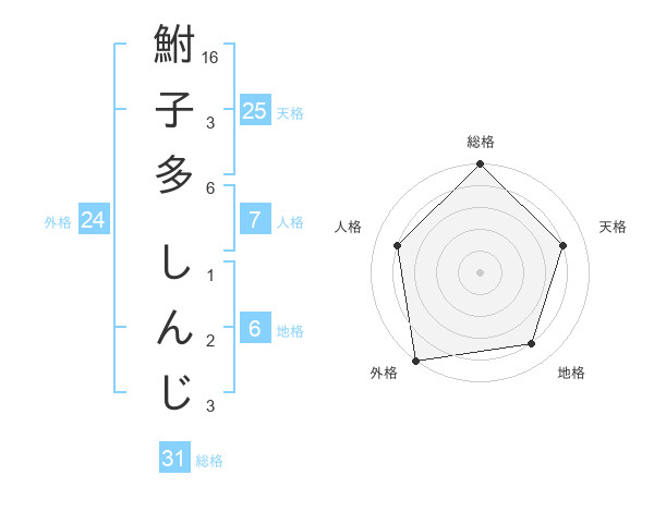 鮒子多 しんじさんを姓名の画数から五運を鑑定