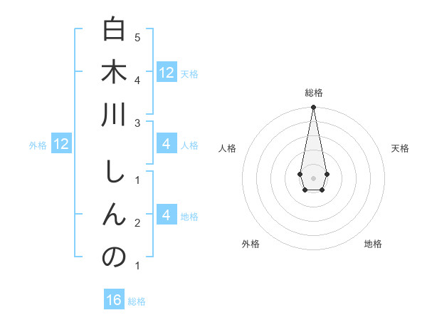 白木川 しんのさんの総格は16画の5点!