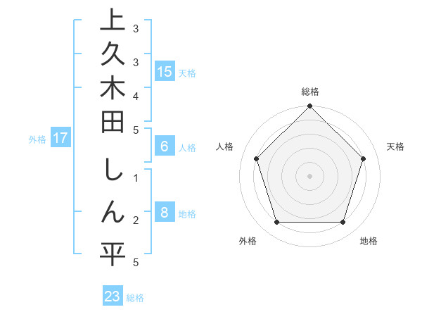 上久木田 しん平さんを姓名の画数から五運を鑑定