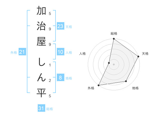 加治屋 しん平さんを姓名の画数から五運を鑑定