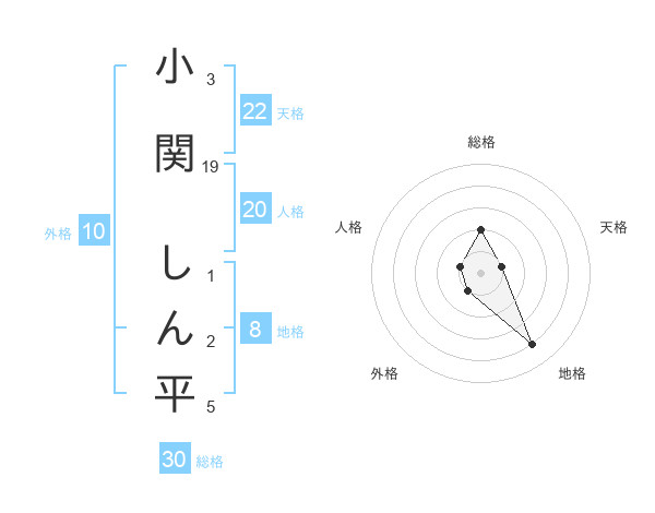 小関 しん平さんの総格は30画の2点!