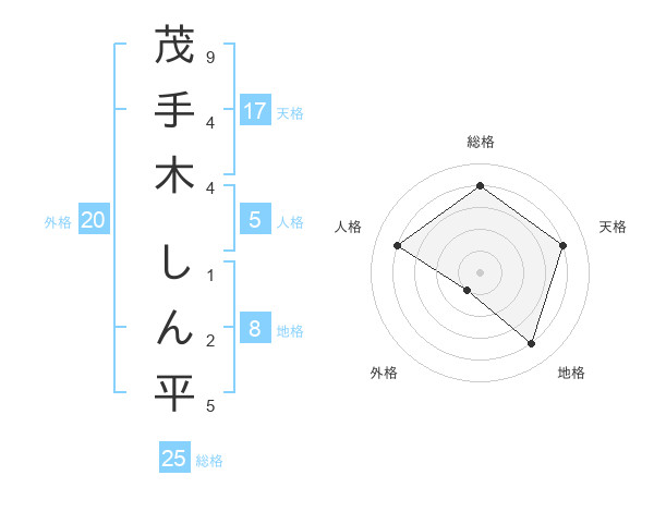茂手木 しん平さんを姓名の画数から五運を鑑定
