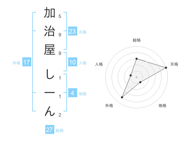 加治屋 しーんさんを姓名の画数から五運を鑑定