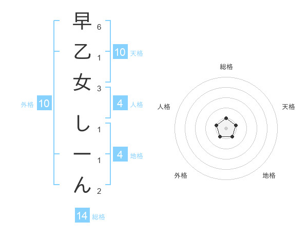早乙女 しーんさんの総格は14画の1点!