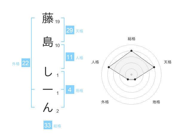 藤島 しーんさんを姓名の画数から五運を鑑定