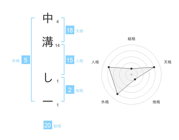 中溝 しーさんの総格は20画の1点!
