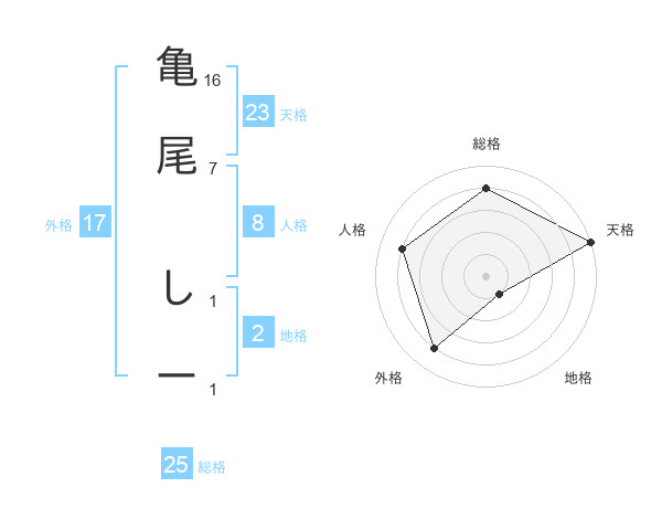 亀尾 しーさんの天格は23画の5点!