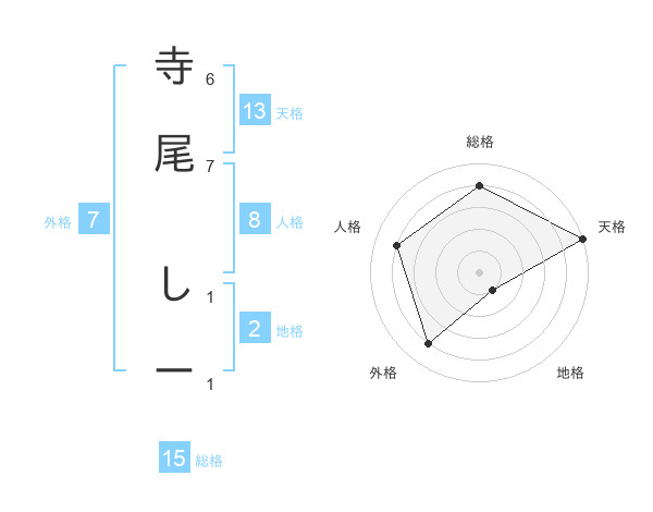 寺尾 しーさんの天格は13画の5点!
