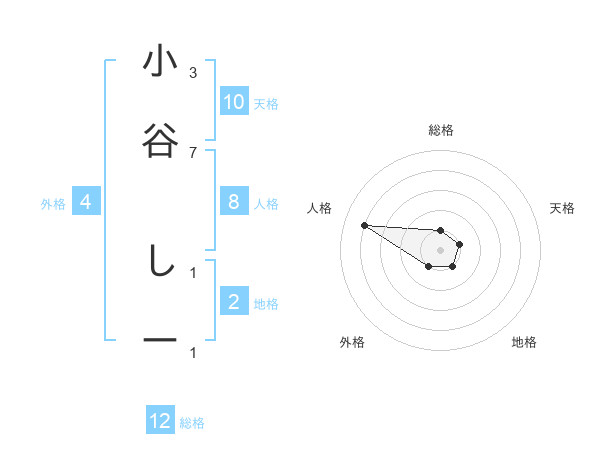 小谷 しーさんの天格は10画の1点!