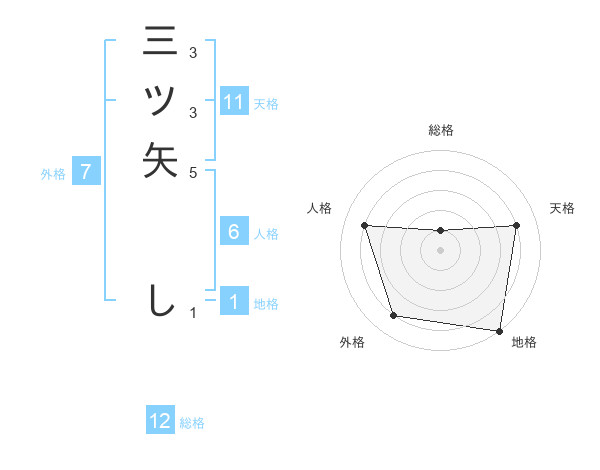 三ツ矢 しさんを姓名の画数から五運を鑑定