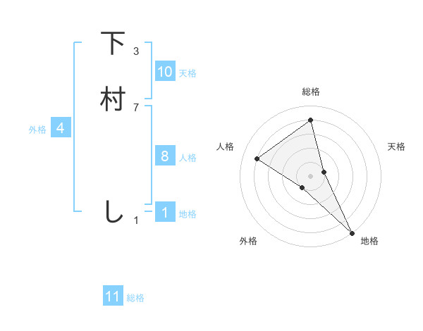 下村 しさんの天格は10画の1点!