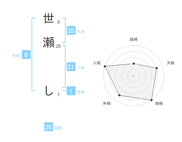 世瀬 しさんの総格は26画の2点!