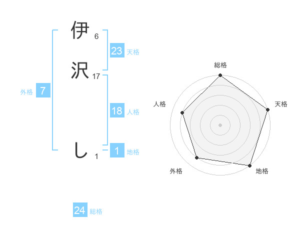 伊沢 しさんの総格は24画の5点!