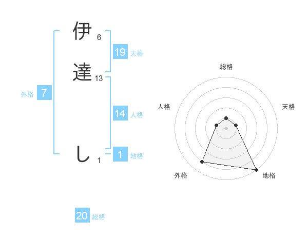伊達 しさんの総格は20画の1点!