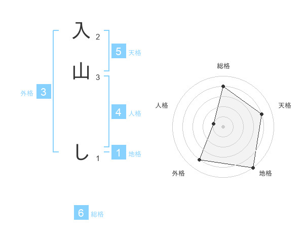 入山 しさんの天格は5画の4点!