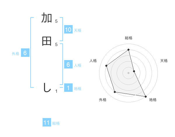 加田 しさんの総格は11画の4点!