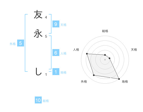 友永 しさんの地格は1画の5点!