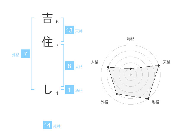 吉住 しさんの天格は13画の5点!