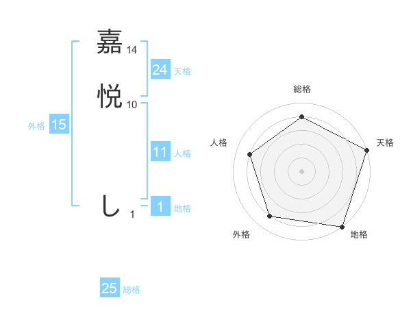 嘉悦 しさんの総格は25画の4点!