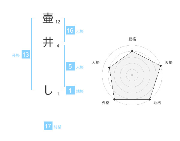 壷井 しさんの天格は16画の5点!
