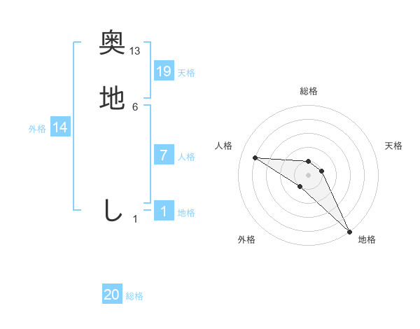 奥地 しさんの総格は20画の1点!