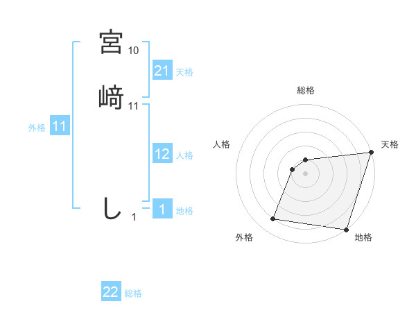 宮﨑 しさんを姓名の画数から五運を鑑定