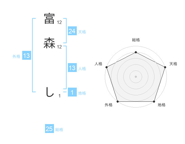 富森 しさんの総格は25画の4点!