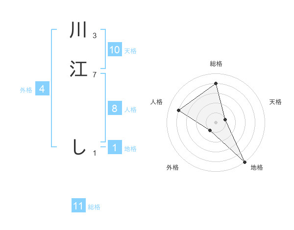 川江 しさんの総格は11画の4点!