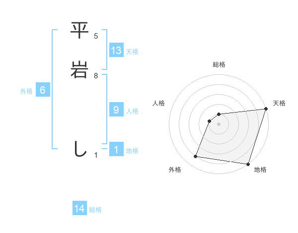 平岩 しさんの天格は13画の5点!